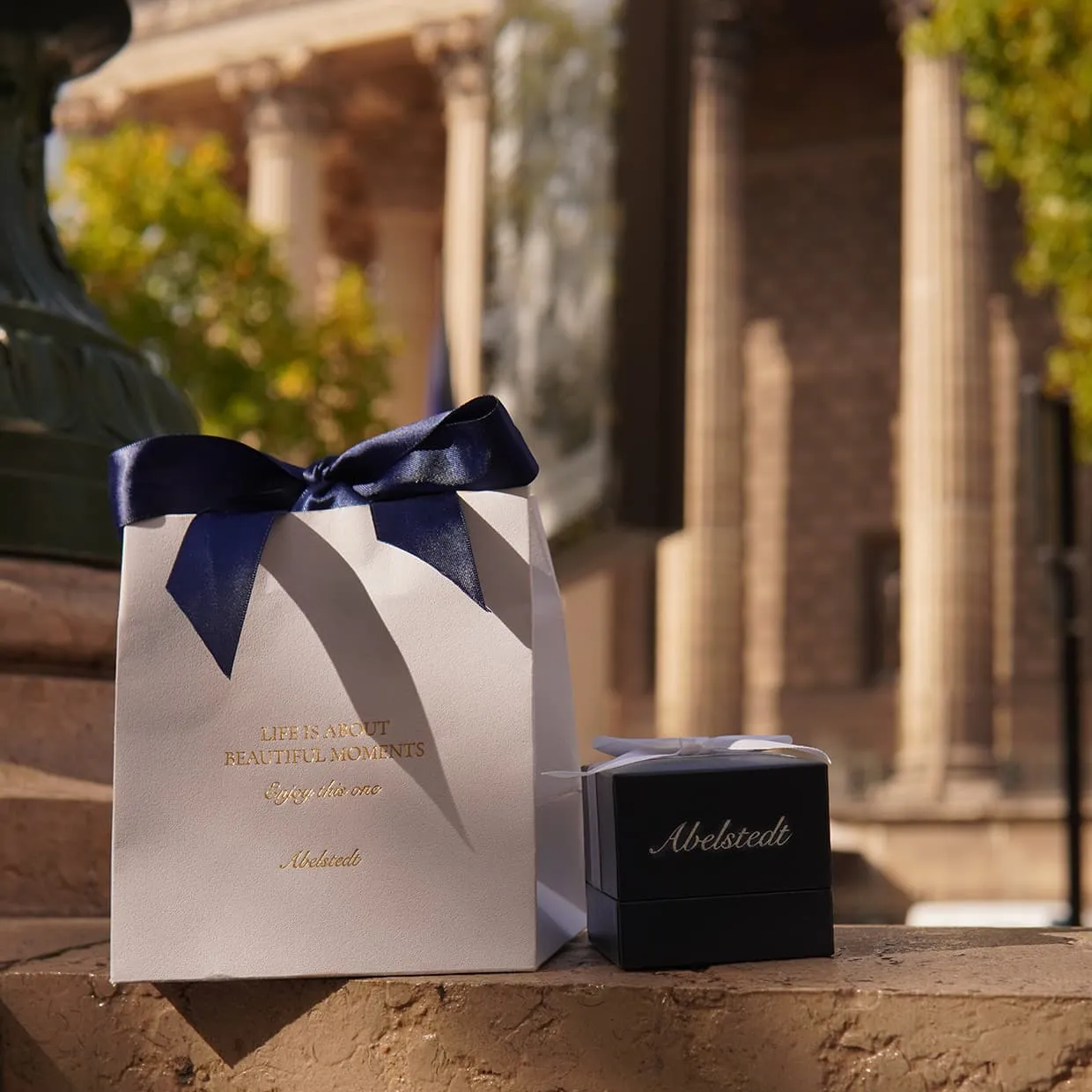 Het Abelstedt team verpakt en verzendt je sieraden, zodat je het veilig en zeker bij je hebt: